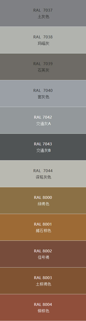 什么是RAL色卡?自從1927年,當(dāng)RAL涉入色彩時(shí),就創(chuàng)建了一種統(tǒng)一的語(yǔ)言,為豐富多彩的顏色建立標(biāo)準(zhǔn)統(tǒng)計(jì)和命名,這些標(biāo)準(zhǔn)在世界范圍內(nèi)被廣泛的理解和應(yīng)用。 4位數(shù)的RAL顏色作為顏色標(biāo)準(zhǔn)已達(dá)70年之久,至今為止已發(fā)展到200多種。無光澤的顏色基礎(chǔ)色卡為RAL-840HR,有光澤的為841-GL,這些顏色基本色塊滿足了大范圍的應(yīng)用,已被許多重要公司及研究機(jī)構(gòu)所使用。RAL-840HR及RAL-841GL 顏色注冊(cè)都作為顏色樣本應(yīng)用于設(shè)計(jì)中,同時(shí)它們也包括了安全和信號(hào)色符合DIN及ISO規(guī)定的顏色要求。